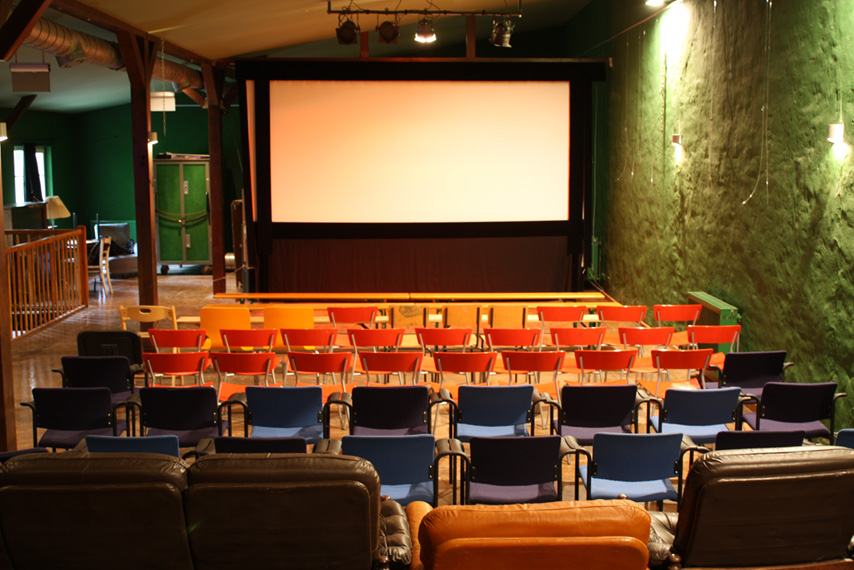 Für die Veranstaltung wird das Kino im ersten Stock zur Verfügung stehen. Es handelt sich hierbei um einen vollständig eingerichteten Kinosaal, der ca. 100 Gästen Platz bietet. Der Zuschauerraum erhöht sich nach hinten, so dass selbst die letzten Reihen eine hervorragende Sicht genießen. Im Zuschauerraum befindet sich eine ausreichend große und komplett eingerichtete Bar. Auf derselben Ebene befindet sich der Toberaum, in dem die Kinderbetreuung bei schlechtem Wetter stattfindet.