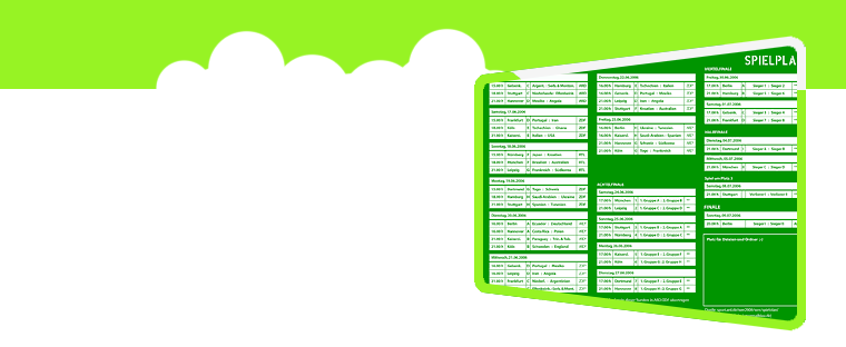 Aus dem kompletten Spielplan der Fußball-WM 2010 haben wir 20 Termine ausgewählt, zu denen wir unser familienfreundliches Public Viewing veranstalten: